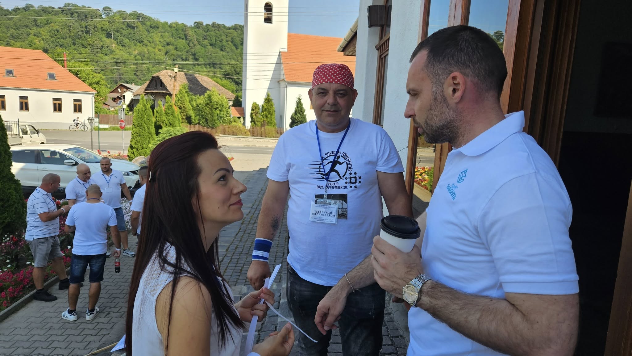 Figyeld a szervező arcot ott középen, ahogy zsebre dugott kézzel lázasan dolgozik Parajd egészségturista imázsán! S a csajokat oldalt, a kapotán, akik tényleg: vágják a karkötőket.