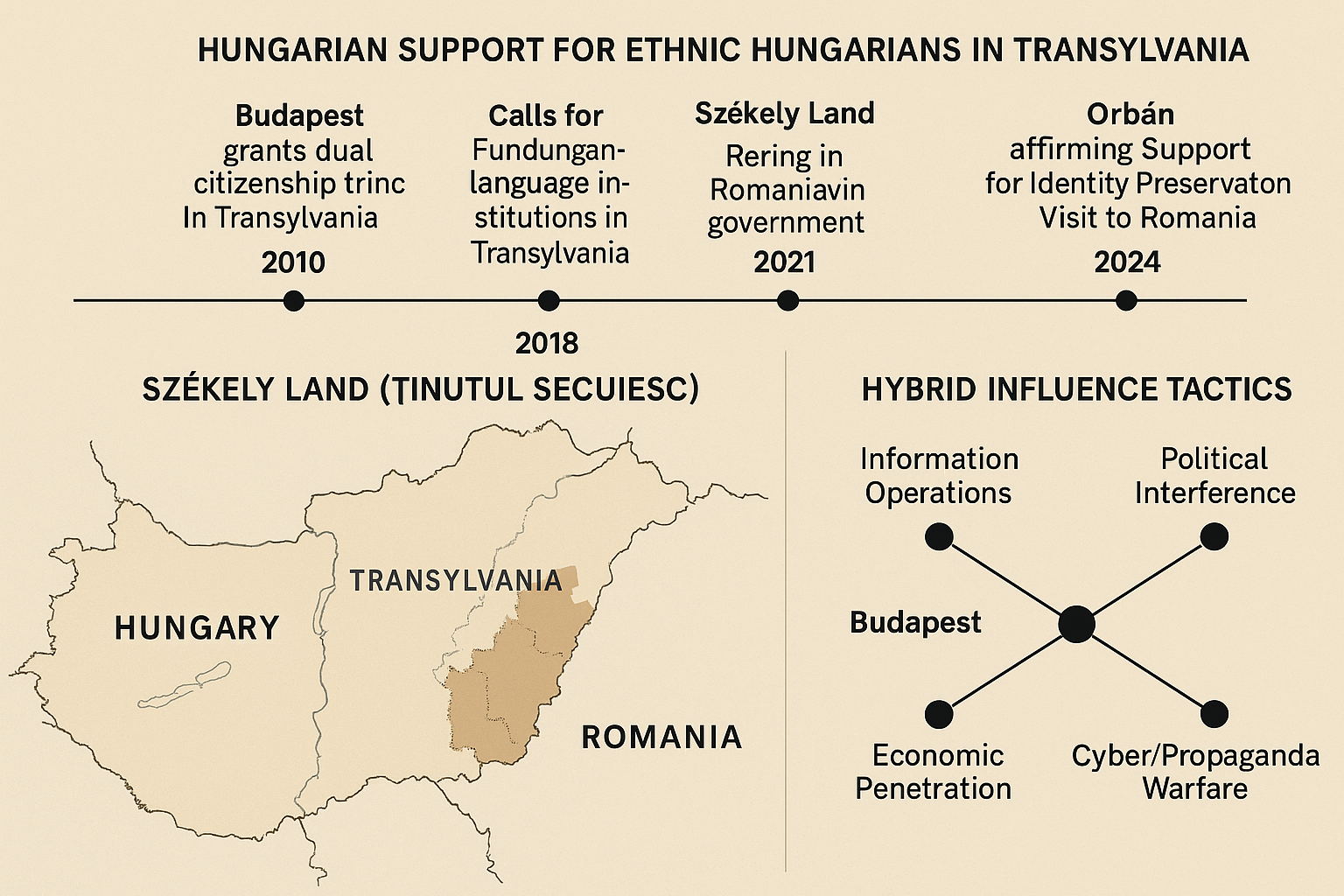 Politikai beavatkozás: a romániai magyar pártok (például az RMDSZ) támogatása, különösen autonómiát követelő irányzatok ösztönzése.